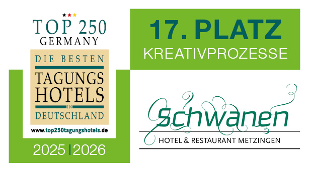 Kreative Ideen brauchen ein kreatives Umfeld. Die Seminarräume unseres Tagungshotels in Metzingen bieten Ihnen den perfekten Ort für produktives Arbeiten. Unsere Konferenzräume, vom “Work.Shop” bis zur Skylounge, die exklusive Tagungstechnik und unsere durchdachten Tagungspauschalen liefern Ihnen das Rundum-Sorglos-Programm für Ihre Konferenzen und Meetings. Nicht umsonst gehören wir zu den Top 250 Tagungshotels in Deutschland.